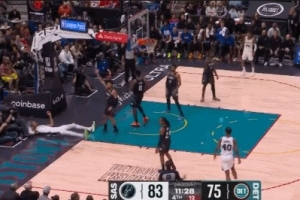 GIF-文班搶到前場板強(qiáng)突造成坎寧安犯規(guī)