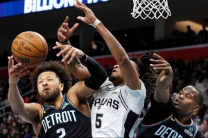 雙方一開局就明牌了,活塞絕對不讓福克斯與文班亞馬舒服,寧可放瓦塞爾們弱側三分。馬刺絕對不讓坎寧安舒服,但是會被活塞沖前場籃板球。