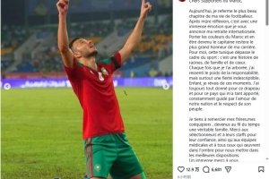 35歲的羅曼·賽斯司職后衛(wèi),他為摩洛哥國家隊(duì)出場86次,貢獻(xiàn)3球1助。他在Instagram發(fā)文如下: