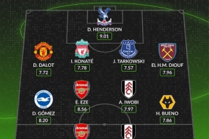 體育資訊2月24日訊 英超第27輪比賽已經(jīng)結(jié)束全部爭奪,WhoScored評選出了本輪比賽最佳陣,約克雷斯、埃澤入選,達(dá)洛特、科納特在列。