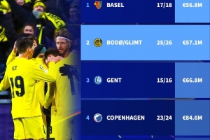 德國轉(zhuǎn)會市場盤點(diǎn)了近10個(gè)賽季闖進(jìn)歐冠16強(qiáng)身價(jià)最低球隊(duì)排行,博德閃耀第二低,僅高于2017-18賽季的巴塞爾。