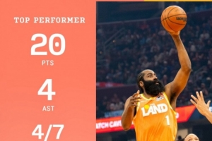 賽后,騎士官方發(fā)布哈登個(gè)人數(shù)據(jù)海報(bào)。