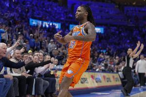 雷霆球員卡森·華萊士出場35分3秒,16投11中(三分5中4),罰球2中1,拿到27分8籃板6助攻1搶斷,正負值+5。