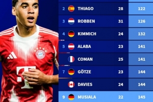 體育資訊2月25日訊 在拜仁3-2擊敗法蘭克福之后,穆西亞拉達(dá)成生涯100場德甲勝利里程碑,用時(shí)145場比賽能夠位列歷史第9少,以下為最快達(dá)成德甲百勝場次榜: