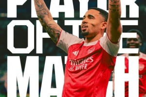 體育資訊1月21日訊 阿森納官方消息,熱蘇斯被評(píng)為阿森納3-1國(guó)際米蘭的隊(duì)內(nèi)全場(chǎng)最佳。