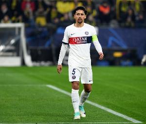 體育資訊2月26日訊 在歐冠淘汰賽附加賽次回合巴黎對陣摩納哥的比賽中,馬爾基尼奧斯破門。