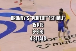 詹姆斯轉(zhuǎn)發(fā)了布朗尼在G聯(lián)盟南灣湖人隊(duì)半場(chǎng)6中6得到15分4搶斷的集錦,并寫道:“繼續(xù)積累日子,年輕的????@布朗尼”