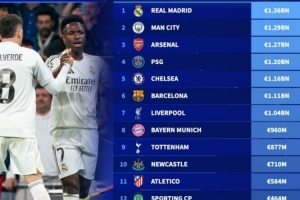 體育資訊2月26日訊 本賽季歐冠16強全部產生,德轉也盤點了16強球隊身價榜,具體如下: