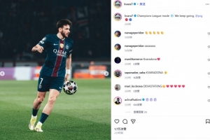 克瓦拉茨赫利亞也在賽后通過(guò)社媒曬出自己的比賽照,并配文:“歐冠模式?? 我們繼續(xù)前進(jìn),@巴黎圣日爾曼 ????”