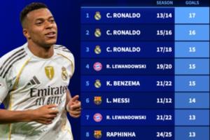 而在歐冠單賽季進(jìn)球排行榜上,姆巴佩距離C羅在2013/14賽季的17球紀(jì)錄還有6球之差。