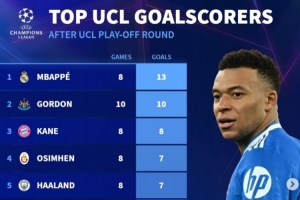 體育資訊2月26日訊 歐冠淘汰賽附加賽已經(jīng)完賽,《轉(zhuǎn)會市場》也統(tǒng)計了本賽季歐冠射手榜,姆巴佩居首。