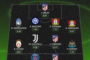 后衛(wèi):扎帕科斯塔(亞特蘭大,8.38分)、巴斯托尼(國際米蘭,7.84分)、塔普索巴(勒沃庫森,7.91分)、格里馬爾多(勒沃庫森,8.07分)