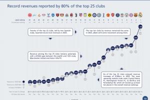 體育資訊02月26日訊 歐足聯(lián)官方發(fā)布了《2025俱樂部財務(wù)與投資格局報告》,其中對所有歐足聯(lián)球隊在2025年的收入進(jìn)行了排名,皇馬以11.84億歐元的收入排名第1,巴薩、拜仁分列二、三名。