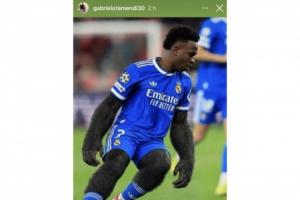目前網(wǎng)上一張維尼修斯與猩猩的合成照片遭瘋傳,據(jù)悉是奧塔門迪兄弟加布里埃爾·奧塔門迪(Gabriel Otamendi)賽前在個(gè)人社媒分享的。引發(fā)爭議后,他已經(jīng)刪帖并將賬號(hào)設(shè)為私密。