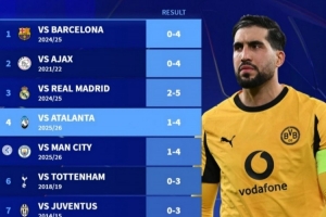 體育資訊2月27日訊 在歐冠淘汰賽附加賽次回合,多特1-4不敵亞特蘭大,總比分3-4被淘汰。德轉(zhuǎn)也盤(pán)點(diǎn)了多特在歐冠最大比分失利榜單,具體如下: