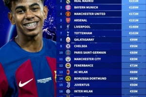 體育資訊2月28日訊 德國轉(zhuǎn)會市場盤點了各大俱樂部2025年球衣銷售收入情況,巴薩以2.77億歐元居首,皇馬以2.31億歐元位居次席,足壇僅兩家西甲豪門球衣銷售收入超兩億歐。
