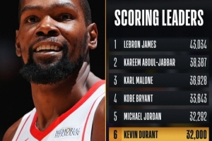 體育資訊2月28日訊 昨日,杜蘭特在戰(zhàn)勝魔術(shù)的比賽中拿到生涯第32000分,目前排名歷史得分榜第六。