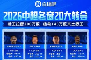 2026中超冬窗轉(zhuǎn)會TOP20【注:數(shù)據(jù)參考德國轉(zhuǎn)會市場網(wǎng),20大轉(zhuǎn)會綜合球員德轉(zhuǎn)身價、轉(zhuǎn)會費以及體育資訊話題度,排名依照德轉(zhuǎn)身價從高至低】