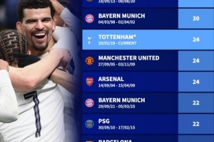 體育資訊1月21日訊 歐冠聯(lián)賽階段第7輪比賽,熱刺在主場(chǎng)以2-0的比分戰(zhàn)勝多特。盡管在聯(lián)賽中表現(xiàn)不佳,但熱刺在歐冠中卻重拳出擊。本場(chǎng)比賽之后,北倫敦球隊(duì)歐戰(zhàn)主場(chǎng)不敗場(chǎng)次增加到24場(chǎng)。根據(jù)德國轉(zhuǎn)會(huì)市場(chǎng)的統(tǒng)計(jì),熱刺歐戰(zhàn)主場(chǎng)不敗場(chǎng)次足以位居第3位。
