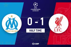 上半場(chǎng)傷停補(bǔ)時(shí)2分鐘,半場(chǎng)結(jié)束,利物浦暫1-0馬賽。