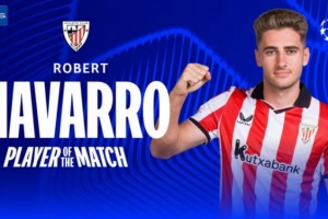 此役羅貝托·納瓦羅為畢爾巴鄂競技踢滿全場,打進(jìn)1球,助攻2次,他當(dāng)選歐冠官方本場比賽最佳球員。