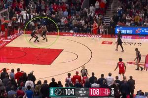 比賽剩最后58秒,馬刺104-106落后火箭2分,??怂雇痘@時(shí),申京與他的手臂發(fā)生接觸影響了他的投籃,這是一個(gè)投籃犯規(guī),??怂贡驹搱?zhí)行兩罰,裁判漏判。