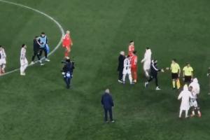 帕夫利季斯罰點(diǎn)時(shí)滑倒,踢飛點(diǎn)球,賽后難過(guò)不已,穆帥擁抱送上安慰。