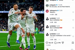體育資訊1月18日訊 西甲第20輪,皇馬主場(chǎng)2比0擊敗萊萬(wàn)特。本場(chǎng)比賽,居萊爾替補(bǔ)出場(chǎng),貢獻(xiàn)1次助攻。賽后,居萊爾更新社媒曬照慶祝勝利。