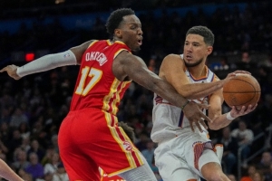 老鷹本賽季戰(zhàn)績(jī)21勝25負(fù),場(chǎng)均得117.6分,場(chǎng)均失119.1分。上場(chǎng)比賽,老鷹客場(chǎng)124-122險(xiǎn)勝灰熊,球隊(duì)結(jié)束4連敗。杰倫·約翰遜32分15籃板8助攻,奧耶卡·奧孔武18分9籃板,麥科勒姆15分6助攻,盧克·肯納德18分4籃板。在交易特雷·楊后,老鷹的戰(zhàn)績(jī)并沒有明顯好轉(zhuǎn),被推上“球隊(duì)老大”位置的杰倫·約翰遜在經(jīng)歷陣痛后,最近兩場(chǎng)比賽表現(xiàn)有了明顯提升,場(chǎng)均30分15.5籃板7助攻遠(yuǎn)超賽季平均。從往績(jī)看,從2014年3月25日之后,老鷹在主場(chǎng)保持對(duì)太陽(yáng)的全勝戰(zhàn)績(jī)。本場(chǎng)恩法利·丹特、波爾津吉斯和扎卡里·里薩謝確定將缺席比賽。