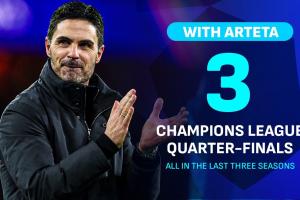 這是阿森納隊史第二次連續(xù)三個賽季挺進歐冠8強,此前只有07/08賽季-09/10賽季間做到過。