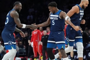 森林狼和隔壁火箭略像:長人鋒線群的防守,進(jìn)攻最后就指著一個人。