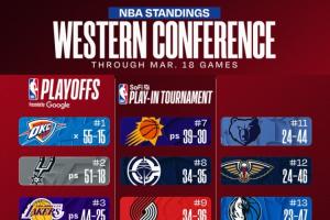 爵士不敵森林狼被淘汰出季后賽及附加賽,掘金不敵灰熊,火箭不敵湖人,森林狼升至西部第四,火箭跌至西部第五,掘金跌至西部第六;