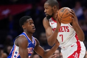 而火箭9個投籃里5個是杜蘭特出手,于是火箭本季加時賽來到1勝5負(fù)。