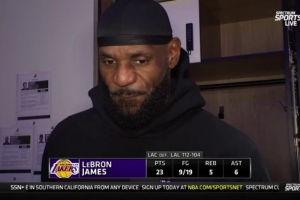體育資訊1月23日訊 今日,湖人104-112客場(chǎng)不敵快船。賽后,湖人前鋒詹姆斯接受了采訪。