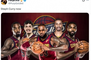 湖人自媒體???????????????? ??曬出了詹姆斯當(dāng)年率領(lǐng)的騎士五人組(詹姆斯、JR·史密斯、奧斯曼、喬治·希爾、TT)并評論道:“這就是庫里現(xiàn)狀?!?/p>