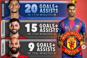 體育資訊1月23日訊 本賽季曼聯(lián)外租巴薩的前鋒拉什福德發(fā)揮出色,各項(xiàng)賽事1774分鐘出場(chǎng)已經(jīng)直接參與20粒進(jìn)球(8球12助)。