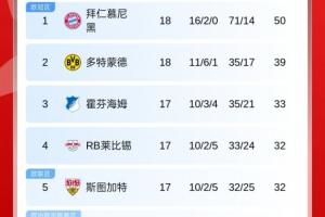 體育資訊01月18日訊 今日德甲第18輪,拜仁客場5-1逆轉(zhuǎn)萊比錫,收獲聯(lián)賽四連勝,11分領(lǐng)跑積分榜。多特3-2圣保利,勒沃庫森客場0-1不敵霍芬海姆。最新積分榜如下: