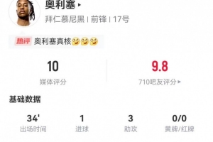 下一篇: 候選名單無奧利塞官方:凱恩當選拜仁vs萊比錫全場MVP