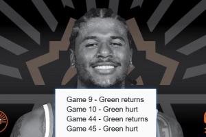 體育資訊01月24日訊 太陽與老鷹的比賽正在進行,第二節(jié),杰倫·格林突然走回了更衣室。