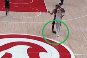 慢鏡頭顯示,布克是在跑動(dòng)時(shí),踩到了奧孔武的腳(兩人都沒有注意到對(duì)方),導(dǎo)致自己嚴(yán)重崴腳!