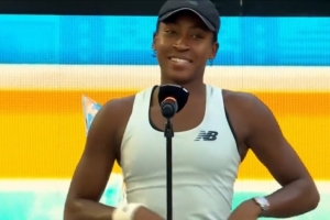 體育資訊3月29日訊 在1-2輸給薩巴倫卡,無緣WTA1000邁阿密冠軍后,高芙在頒獎典禮上發(fā)表了演講。