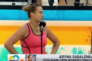 體育資訊3月29日訊 在2-1擊敗高芙奪得WTA1000邁阿密冠軍后,薩巴倫卡在頒獎(jiǎng)典禮上發(fā)表了演講。