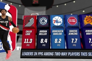 開拓者主場迎戰(zhàn)猛龍,轉播方給出一項數據統計,本賽季雙向合同球員場均得分前五: