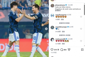 體育資訊4月2日訊 阿根廷前鋒阿爾瓦雷斯更新社媒動態(tài),曬出與梅西慶祝的合照。