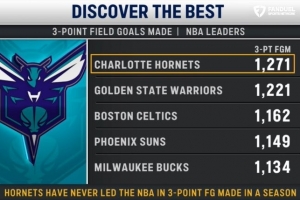 黃蜂主場迎戰(zhàn)步行者,轉(zhuǎn)播方給出本賽季球隊三分命中總數(shù)Top5: