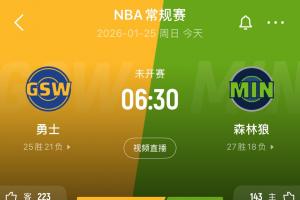 體育資訊01月25日訊 名記Shams報(bào)道,原定今日06:30進(jìn)行的,森林狼主場對陣勇士的比賽被延期至26日06:30。