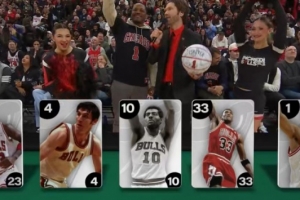 五件球衣分別是:23喬丹、4杰里·斯隆、10鮑勃·樂福、33皮蓬、1羅斯