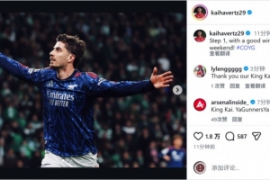 哈弗茨社媒曬出慶祝進(jìn)球的照片,配文:“第一步,拿下一場(chǎng)美妙的勝利,周末見(jiàn)!”