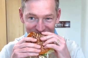 面對(duì)網(wǎng)友調(diào)侃他吃漢堡像在“受刑”,Kempczinski 解釋那只是童年習(xí)慣?!拔覌尲医毯車?yán),從小就教育我:嘴里有東西的時(shí)候不要說話?!彼寡裕耙曨l里我確實(shí)該豁出去了,嘴里塞滿東西也要說話。”