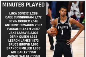 美記Nate Duncan列出了本賽季出場(chǎng)時(shí)間比文班亞馬多,但因65場(chǎng)規(guī)則沒有評(píng)獎(jiǎng)資格的球員,按出場(chǎng)時(shí)間依次是東契奇、坎寧安、布克、愛德華茲、西亞卡姆、拉拉維亞、奎因、詹姆斯、布魯斯·布朗、布蘭登·米勒、貝利、賈雷斯·沃克、艾頓、雷諾、布萊克、席爾瓦、迪亞巴特、八村塁。